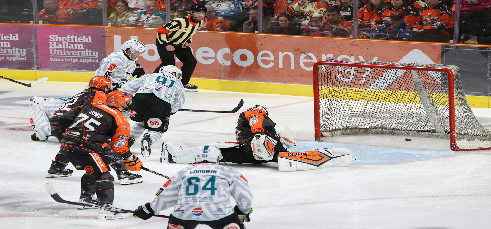 Having survived those scares, Sheffield set about getting back on level terms but they were up against an inspired Kupsky who made a superb improvised save off Jordon Southorn’s shot and also froze shots from Cormier and Jack Dougherty.